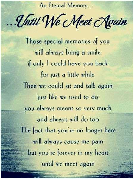 “Those we love don’t go away, They walk beside us every day, Unseen, unheard, but always near, Still loved, still missed and very dear.” Death leaves a heartache no one can heal, love leaves a memory no one can steal.”